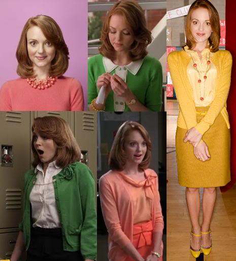 Emma Pillsbury has become an indie fashion plate on the hit series Glee on Fox Tuesdays. Her sweaters, pearls and brooches are standard fare for her.
